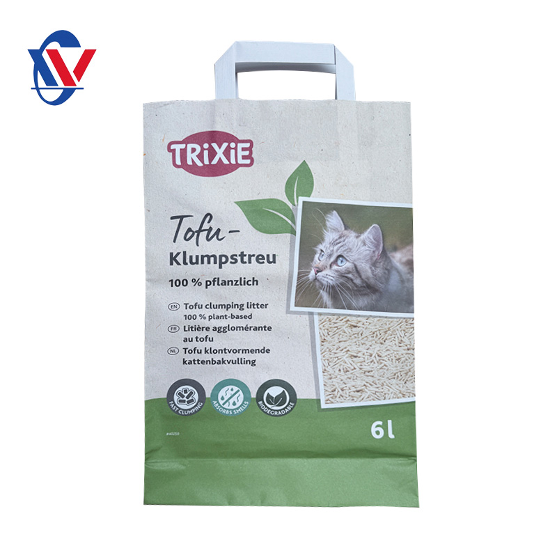 3. Durabilité. La structure composite rend le sac plus robuste et résistant à la perforation et à la déchirure, ce qui le rend capable de supporter le poids de la litière et les bosses de transport sans se casser.