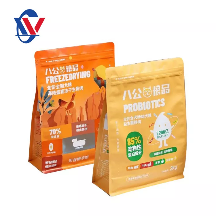 Divers types de sacs d'emballage d'aliments pour animaux secs produits par les principaux fabricants, la combinaison de divers matériaux, dépendent de différents types de variétés alimentaires pour animaux de compagnie, de la taille et du poids de chaque paquet, du type de sac d'emballage, des exigences de test des fabricants de nourriture pour animaux de compagnie pour les sacs d'emballage, des exigences de la conception des aliments alimentaires pour animaux de compagnie, des exigences de durée de conservation des sacs d'emballage alimentaire pour animaux de compagnie et des exigences pour les aliments pour animaux alimentaires pour les aliments pour la conception des sacs d'emballage pour animaux de compagnie. En plus de la sélection des matériaux, de la coordination d'impression et des conceptions supplémentaires telles que des fermetures à glissière à ouverture multiple et à clôture, des fermetures à glissière de curseur, des vannes d'échappement unidirectionnelles, des buses obliques, etc. peuvent aider à améliorer la valeur maximale des sacs d'emballage alimentaire pour animaux de compagnie.
